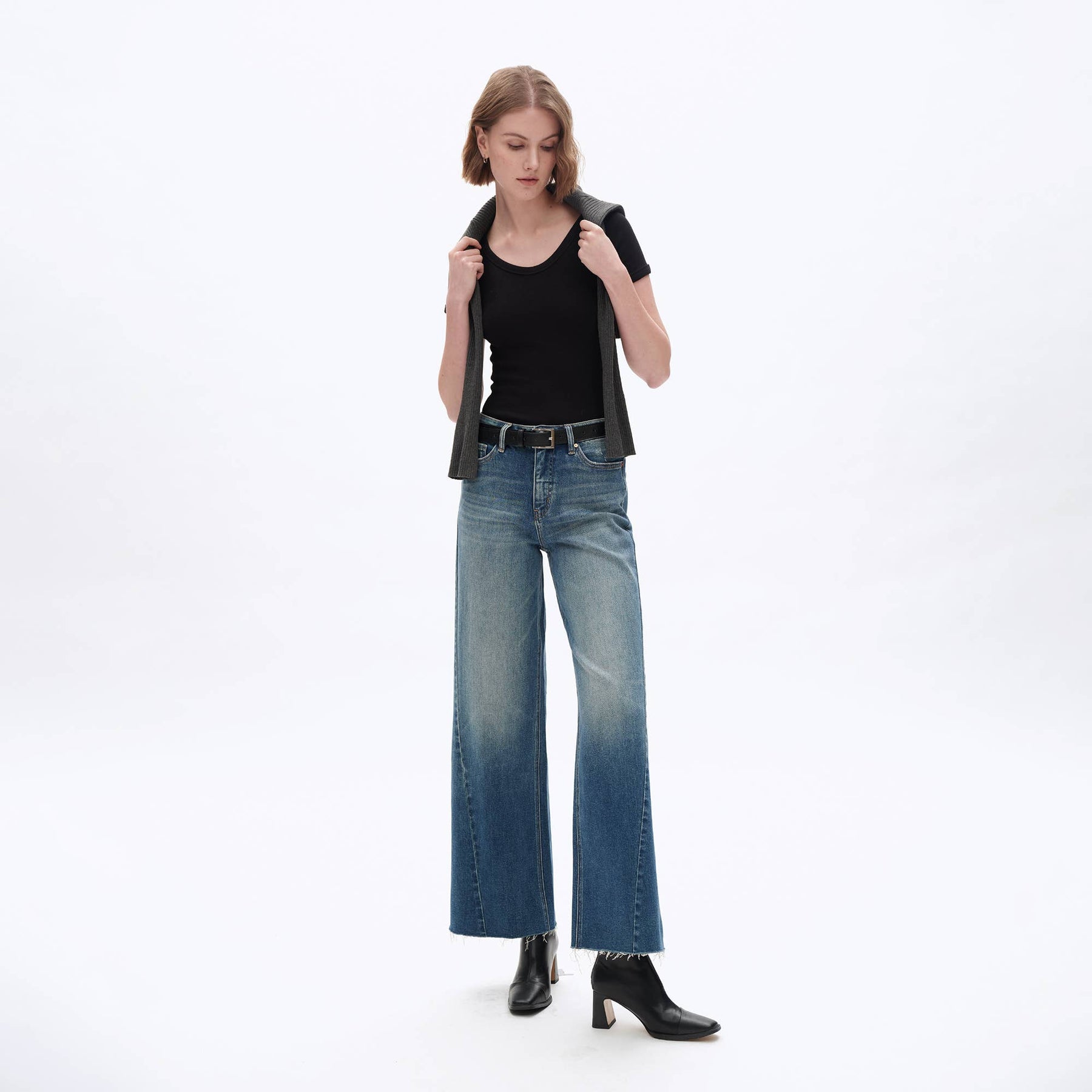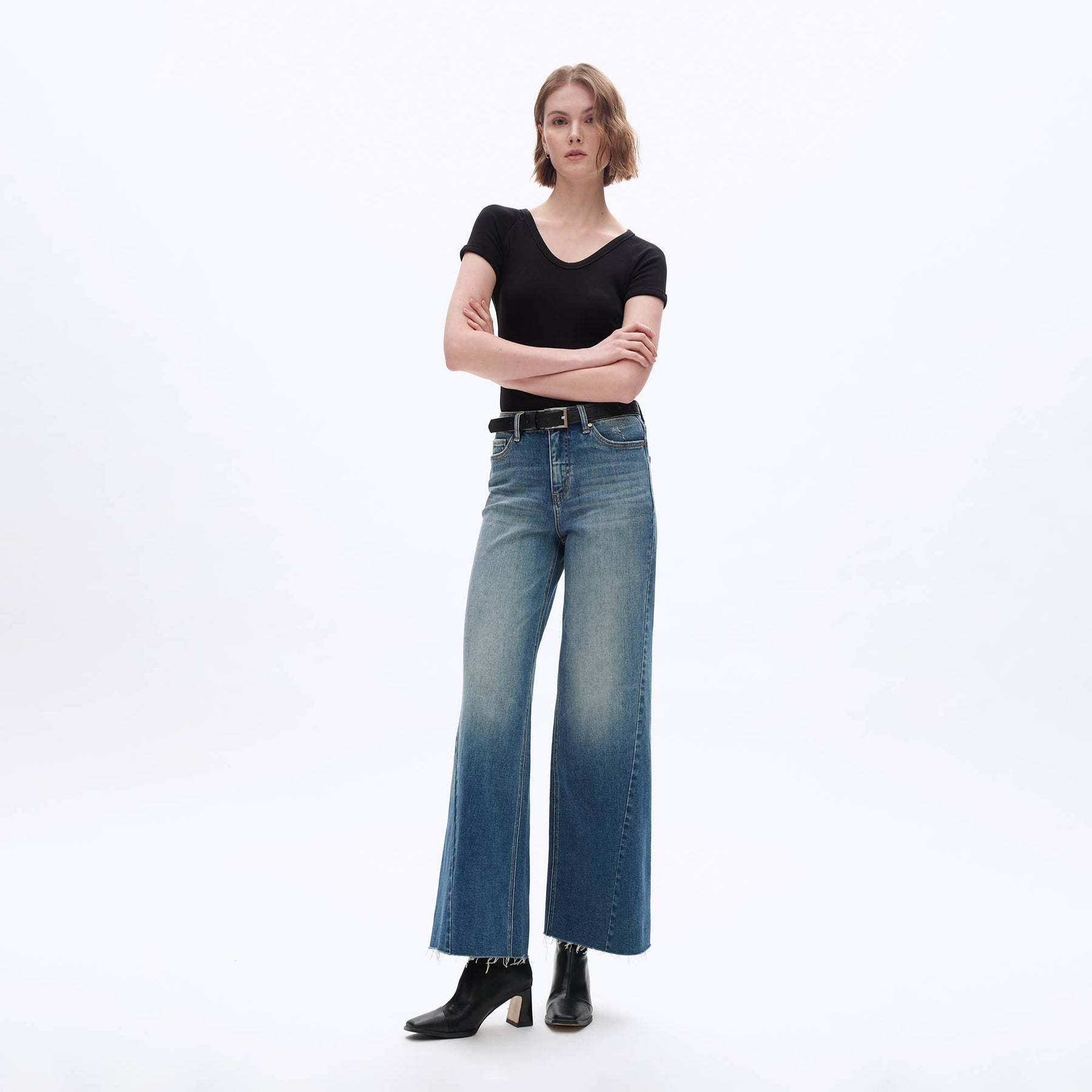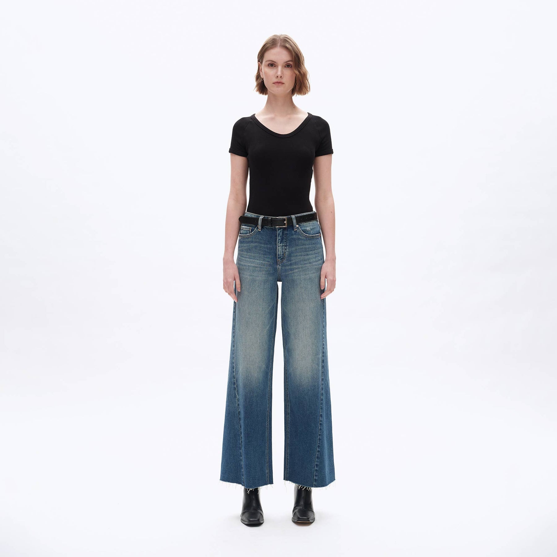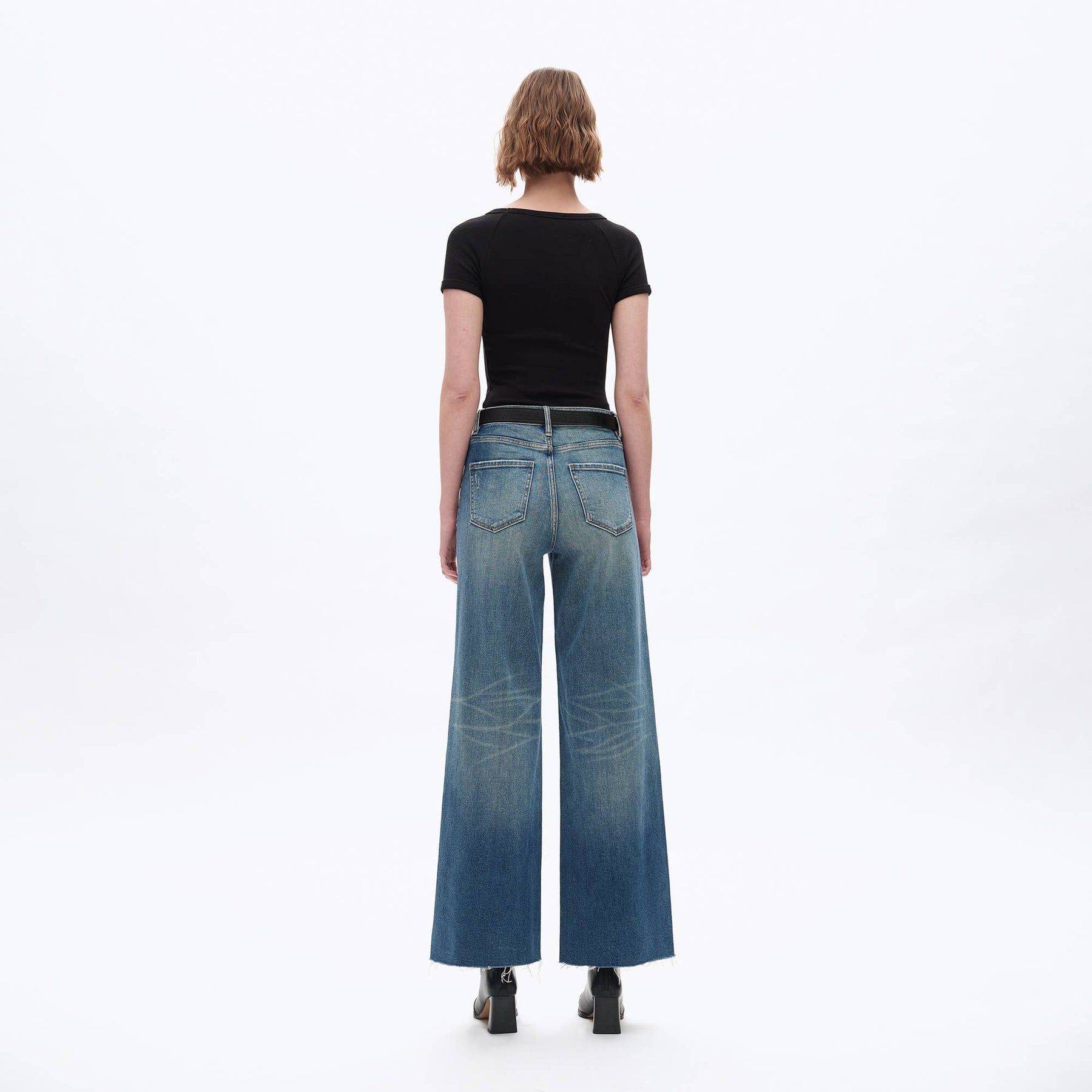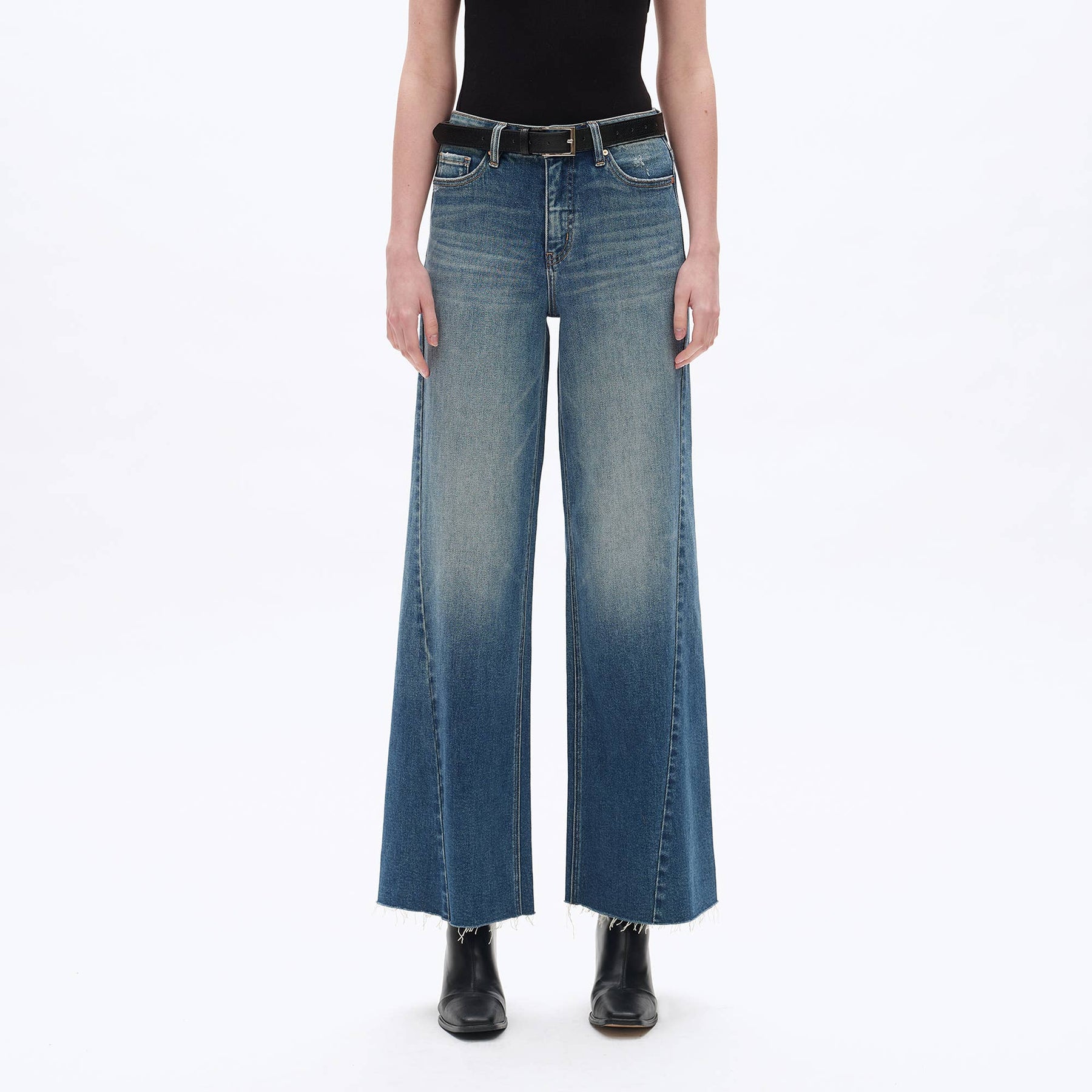 HIGH RISE WIDE LEG DENIM JEANS WITH RAW HEM