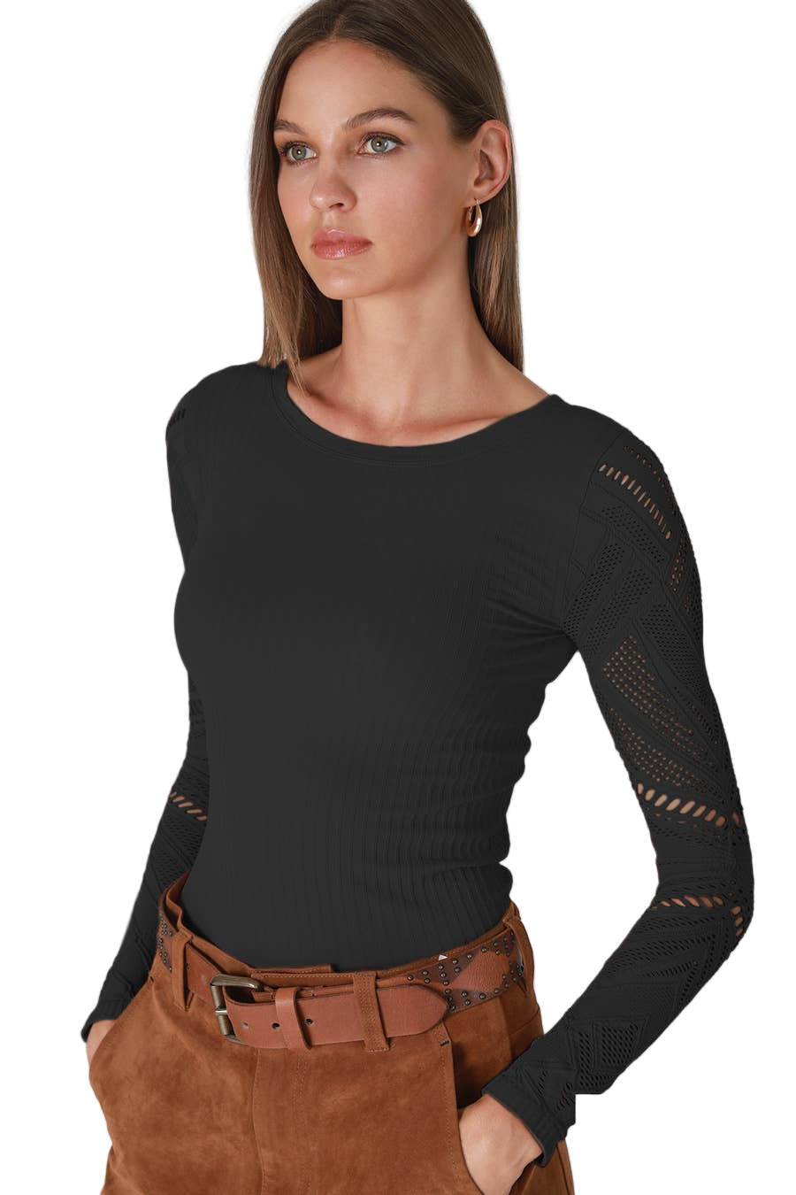 Floral-Print Lace Mock-Neck Long-Sleeve Top