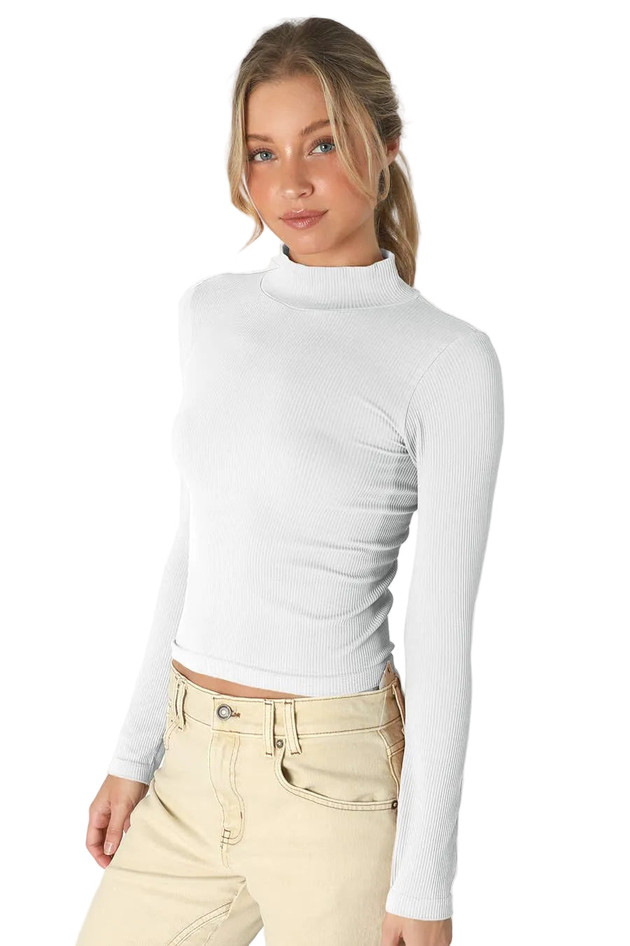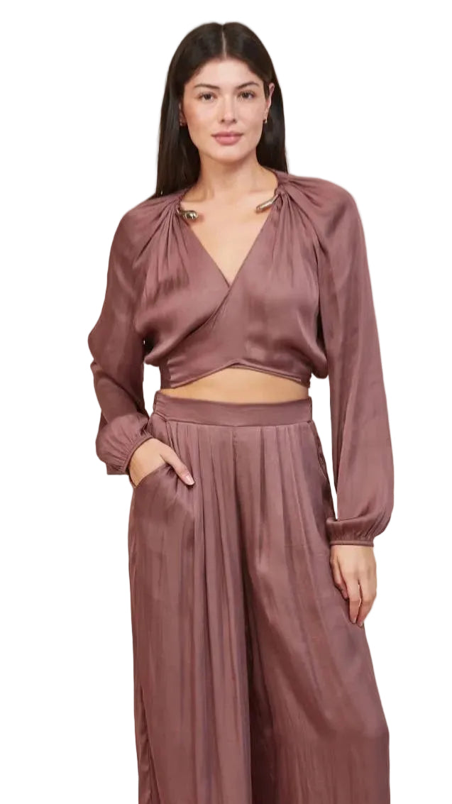Ribbed 3/4 Sleeve V Neck Crop Top