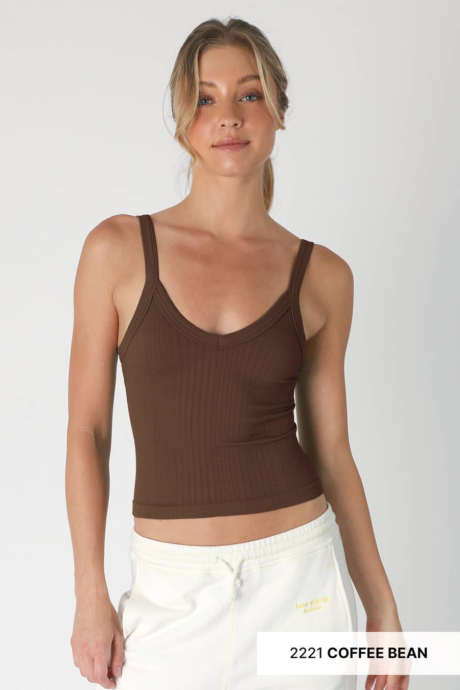 Featuring a ribbed fabric with a V neckline and a cropped fit.